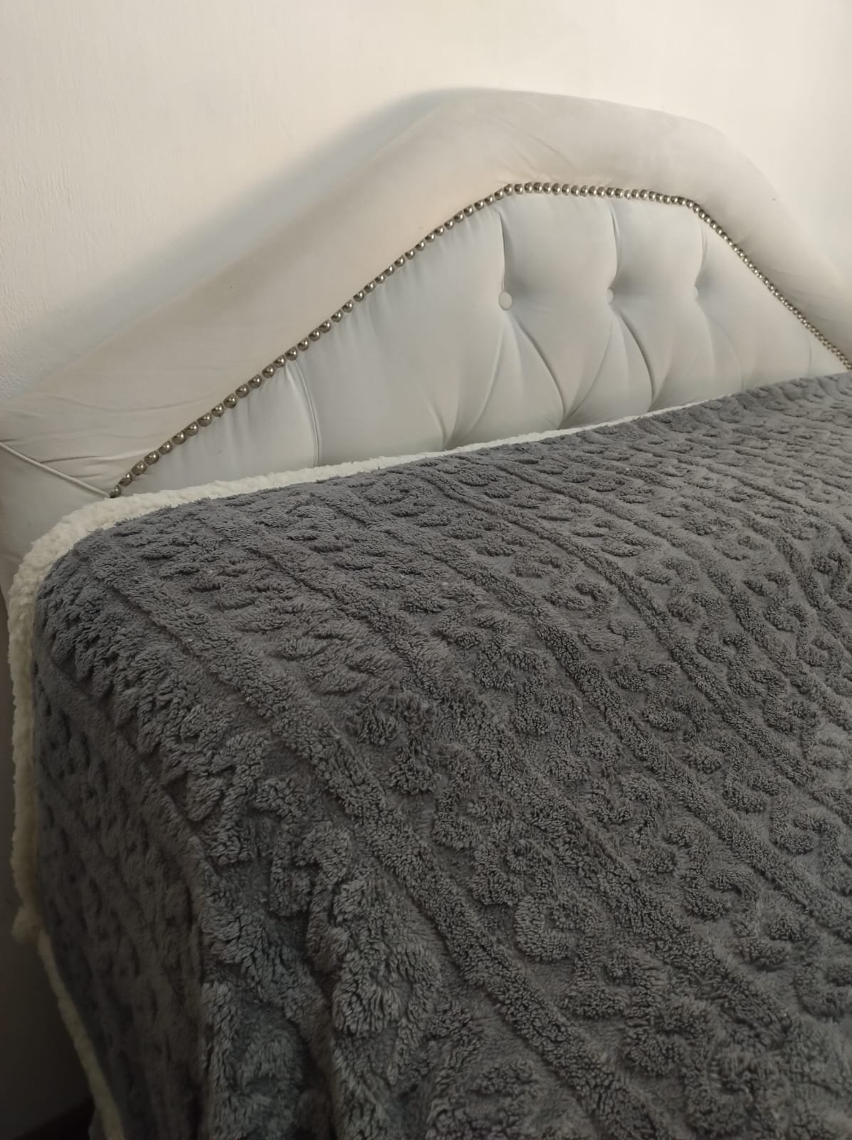 Frazada Queen Jackard con Corderito Gris Topo 2,40m x 2,40m