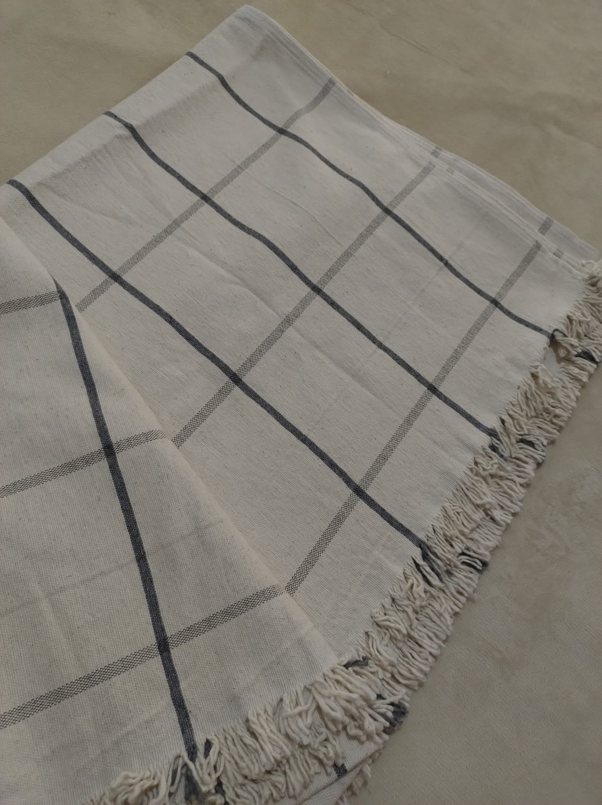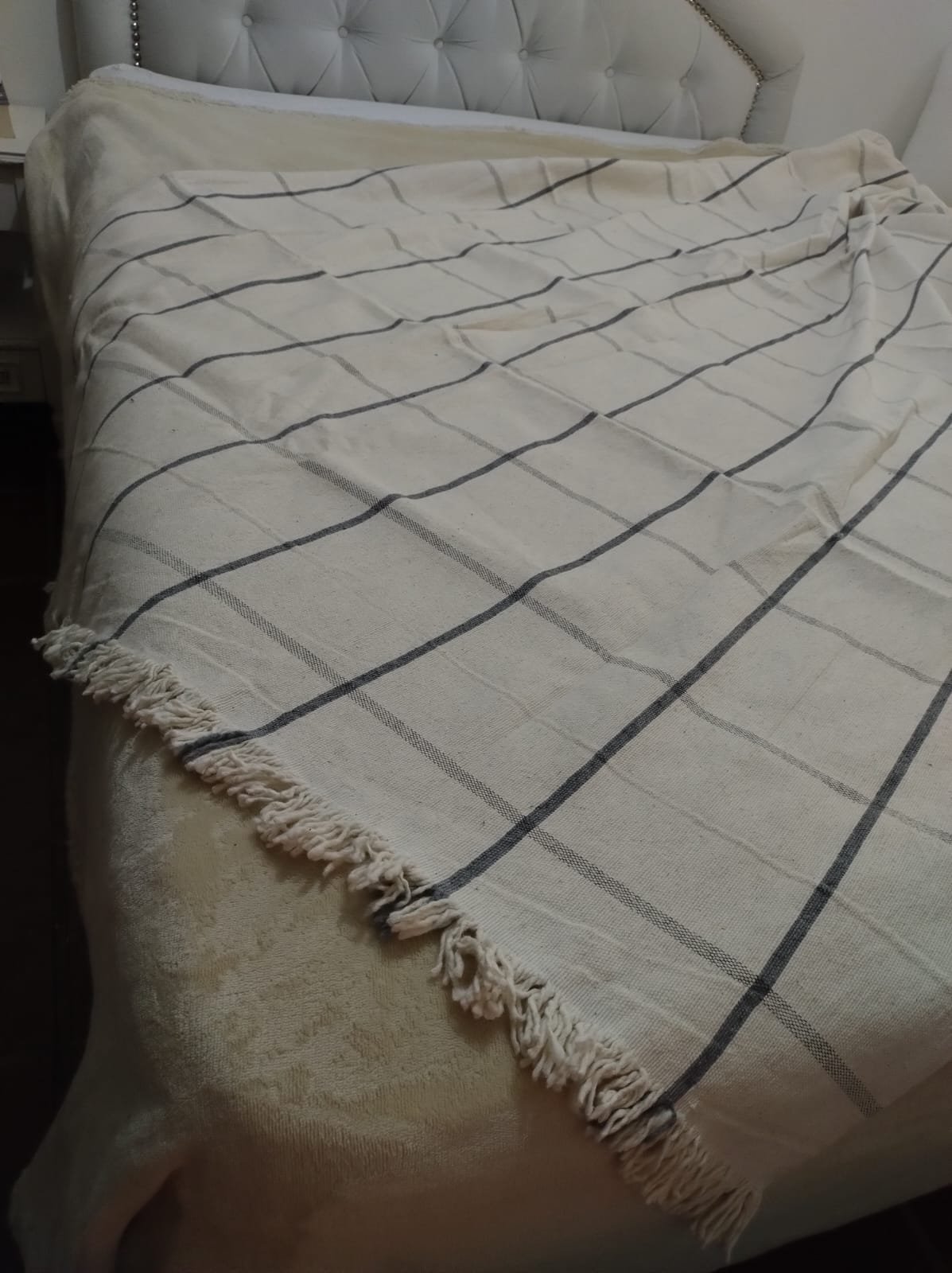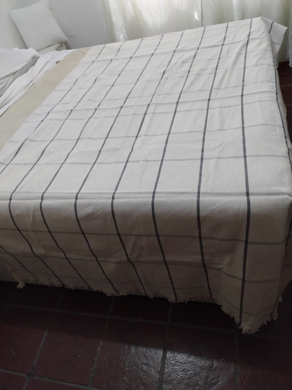 Manta de Pabilo Cuadrille Blanco con Marino 1,40m x 2,50m