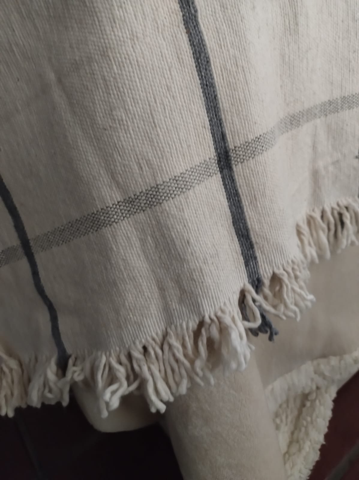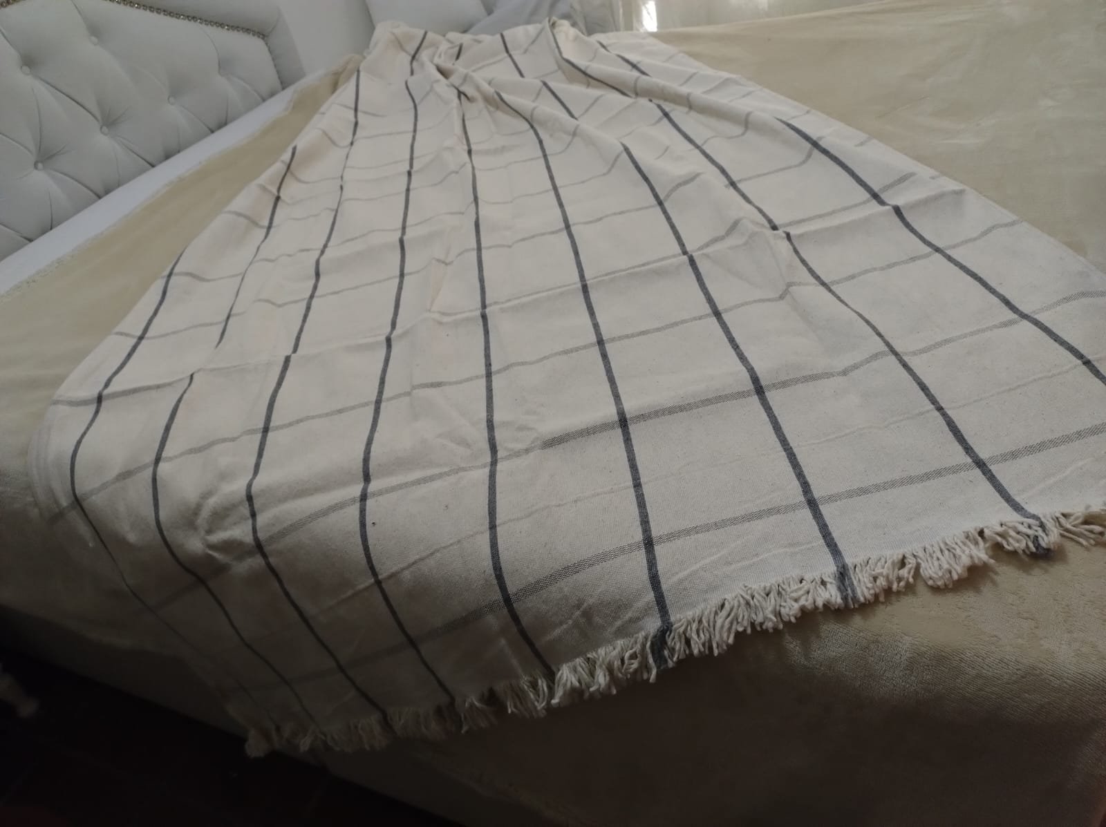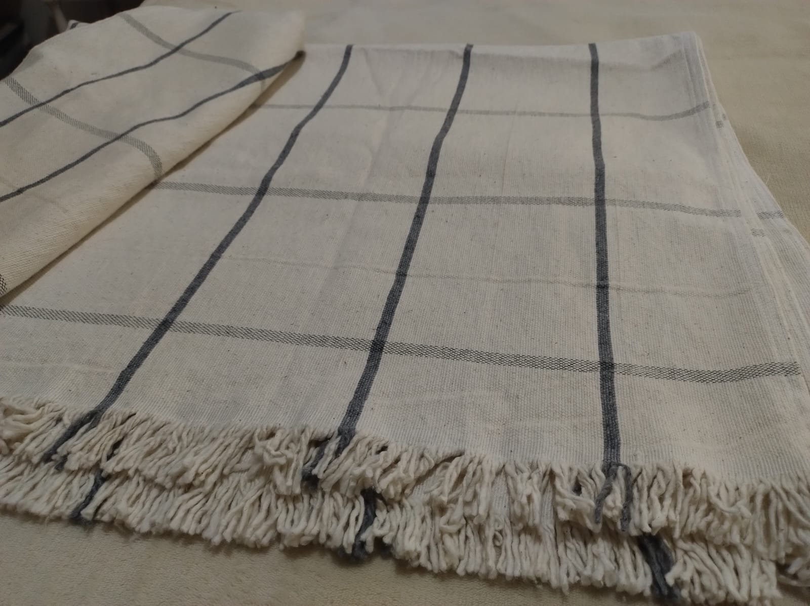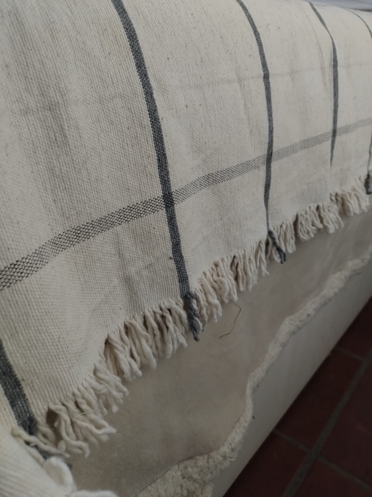 Manta de Pabilo Cuadrille Blanco con Marino 1,40m x 2,50m
